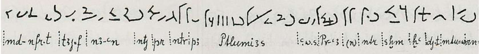 Demotic, 196 B.C., line no. 24mtw =w dj.t ḫꜥ sḫm-(n-)nṯr (n) pr-ꜥꜣ Ptlwmjꜣs pꜣ nṯr-pr ntj- – nꜣ-ꜥn tꜣj =f md.t-nfr.t